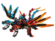 - Der Fusionsdrache verfügt über zwei Sitze für Minifiguren, zwei Köpfe mit Schnappmaul, einen beweglichen Hals und Schwanz, bewegliche Flügel und Beine, eine funktionstüchtige Armbrust sowie über durchsichtig-blaue und durchsichtig-orange Elemente.