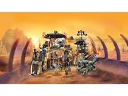 Begib dich in die Drachengrube. Das Set enthält einen Thron, eine Funktion zum Öffnen des Tors, einen Wachturm mit Doppelraketenshooter und ein Gefängnis mit Falltürfunktion. Außerdem gibt es einen beweglichen Drachen und 9 Minifiguren.
