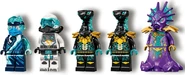 Für packende Duelle um das begehrte Wellenamulett beinhaltet das Drachen-Spielset 5 Minifiguren: NRG Nya, Unterwasser-Zane mit Taucherflossen, Prinz Kalmaar und 2 gefährliche Maaray-Wächter. Ein Mini-U-Boot mit Cockpit für Unterwasser-Zane und ein Ständer fürs Amulett sind ebenfalls enthalten.