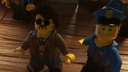 Etwas später erreichten sie die Tankstelle und betraten alle das Gebäude. Während sich McBrag im Laden nach den Ninja umsah, wendete er sich an den Inhaber des Geschäfts, Tingeli Tim, der sie fragte, ob er ihnen helfen könne. Butchie erzählte zunächst, dass sie nach ein paar geflohenen Häftlingen, den Ninja, suchen. Da Tingeli verwirrt „Ninja“ wiederholte, erinnerte er daran, dass er sicher ihren Ausbruch in den Nachrichten gesehen hätte und sie daran dachten, sie seien vielleicht dort in der Gegend. Tingeli nahm anschließend dazu Stellung und verriet, dass sie wirklich bei ihm seien, wodurch er das Versteck der Ninja aufdeckte, obwohl er ihnen helfen wollte, doch durch die Stromschläge Vergangenes leicht vergaß oder unpassend ausplauderte. So kam es dazu, dass sich ein paar der Ninja zu zeigen gaben, was Butchie und die anderen Polizisten zuerst erschreckte. Allerdings zögerte McBrag nicht mehr länger und erklärte die Ninja sowie Dareth für verhaftet. Doch Flüchtigal, der hinter einem Regal mit Jay versteckt gewesen war, stieg auf einen der Schränke und löste mit Umkippen eine Kettenreaktion aus, durch die er Butchie zu Boden schlug. Da er als Nächstes auf McBrag sprang, hielt er ihn mit seinen Kollegen fest, was jedoch zur Flucht der Ninja führte, um die sich keiner kümmerte. Nachdem sie Flüchtigal in Gewahrsam genommen hatten, eilte er mit McBrag und einem anderen Beamten nach draußen, wo sie die Ninja beim Wegfahren in einem ihrer Autos und den anderen Wagen, der von Kai unter Feuer gesetzt wurde, sahen. Dabei deutete er an, dass der Bürgermeister wütend sein werde, wenn er von ihrem Entkommen erfahren werde, was McBrag jedoch erst recht erzürnte und Butchie aufzucken ließ.