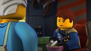 Die Ninja wollten sich mit dem Flugsegler auf den Weg zum Tempel des Lichts auf der dunklen Insel machen und verabschiedeten sich daher am Strand Ninjagos von ihren Angehörigen. Dort ermahnte Edna, dass Jay sein Gemüse essen soll. Darauf stimmte Ed ihr zu, damit sie Ruhe gab. Nach einer Umarmung und nachdem die Ninja ablegten fragte Edna, ob er saubere Unterwäsche eingepackt habe, wodurch Jay sich schämte und einige Lacher kassierte.
