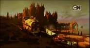Während des Kampfes mit den Zeitzwillingen und den Schlangen-Samurai wurde der Flugsegler abgeschossen und stürzte in der Wüste unter dem Tempel ab.
