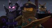Er und die Schlangen, die ihm daraufhin die Treue schworen, nutzten das Schiff daraufhin als Hauptquartier und nutzten es, um zu den Goldenen Gipfeln zu gelangen, wo sie die Goldenen Waffen zur Megawaffe vereinten. Mittels dieser versuchte Garmadon mehrmals vergeblich, die Ninja zu besiegen und Lloyds Ausbildung zum Grünen Ninja zu verhindern. Garmadon gründete dafür ein Bauunternehmen, um Dareths Club, in dem Lloyd trainierte, abreisen zu können, mit der Begründung, dass Dareth bei ihm Schulden haben soll.