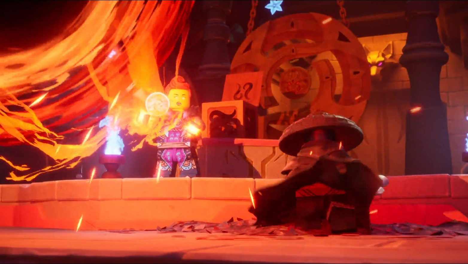 Nach einer Andeutung Nyas, verstand Jordana, dass sie unter dem Stillstehzauber standen und befreite sie. Nur war damit noch nicht alles vollbracht, denn die Brücke zum Kloster war von Nokt zerstört worden. Selbst Coles Titandrachen-Mech hatte keine elementare Energie seiner Mutter mehr übrig - genauso wenig verfügten die Ninja über Elementarkräfte. Zur Rettung kam es dann doch, als Wyldfyre, Sora und Lloyd mit der Kombi-Raupe eintrafen, welche über die Kluft hinwegsetzen konnte.