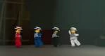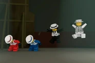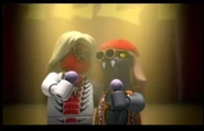Vor dem Konzertsaal wurde eine Siegesfeier nach dem Sieg über das Ultraböse abgehalten, bei der einige Helden über einen roten Teppich liefen. Allerdings tarnten sich zwei Verbrecher als Ehrengäste, die der Mechaniker und Miss Achtung waren, um auch am Ruhm teilhaben zu können. Dennoch blieben sie nicht unbemerkt und wurden erwischt, woraufhin sie eilig davonrannten, während die Ninja ihren Spaß bei der Sache hatten.
