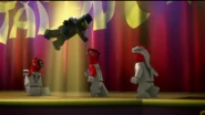 Lou war verletzt, dass sein Sohn stehlen wollte, und stürmte aus dem Zimmer. Während die anderen ihren Führer trösteten, gingen eine Gruppe von verkleideter Schlangen, die Gangster-Gang, beiläufig aus ihrem Umkleideraum und auf die Bühne. Kai hörte dann die Stimme von Pythor von der Bühne, der rote Ninja, der aus den Vorhängen blickte und die Ninja darauf aufmerksam machte, dass Pythor und die Schlangen unter ihnen waren. Jay stimmte der Idee zu, die Trophäe zu stehlen, aber Cole hatte seine Meinung geändert und erklärte, dass sie sie gewinnen würden.