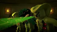 Lizaru war anwesend, als Garmadon auf der Black Bounty um Vorschläge zur Vernichtung der Ninja bat. Nach ihrem Brainstorming schnappte sich Lizaru Zanes Ninja-Anzug, der noch immer im Flugschiff herumlag, um ihn Garmadon zu geben, der mit den Klamotten der ursprünglichen Ninja und der Megawaffe die bösen Ninja erschuf.