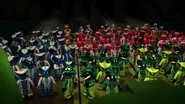 Die Schlangen begaben sich zum Mega-Monster-Vergnügungspark, um die erste Reißzahnklinge zu ergattern, wobei Lizaru und zwei andere Giftnattern ihr Gift auf eine Gruppe von Unschuldigen sprühten. Als sie die Reißzahnklinge fanden, hinderten sie die Ninja daran, sie ihnen abzunehmen, mussten sie aber von Samurai X, der sie stahl, zurückholen. Als sie die Maske des Samurai abnahmen, enthüllte sich der mysteriöse Held als Nya.