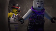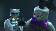 Als die Ninja in sein Lagerhaus eindrangen, um seine Einladung zum Rat des Diamant-Königs zu empfangen, indem Lloyd in Verkleidung seinen Platz einnehmen soll, steuerte er heimlich seine herumliegenden Robo-Arme, was seinen Gegner jedoch nur ansatzweise auffiel. Doch als sein Schatten plötzlich im Verborgenen durch den Raum huschte, wurde Zane umso misstrauischer und blickte umher. Gerade, als sich Lloyd von einem Werktisch entfernte, gab er sich jedoch zu erkennen und warf diesen mit einem Greifarm zu Boden, sodass er sich von dessen Griff nicht mehr lösen konnte. Auch mit Cole und Zane gelang ihm dasselbe. Allerdings schreitete Jay ein, der mit seinen Blitzen Lloyd befreien konnte, jedoch erfolglos versuchte den geschickten Mechaniker zu treffen.