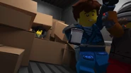 Sofort stellte sich Jay in Angesicht mit dem Mechaniker und schoss Blitze auf ihn. Trotzdem konnte er sich ohne Schwierigkeiten mit seinen Greifarmen als Schutz verteidigen und ihn, wie auch Cole, mit diesen anschließend festklemmen. Auf einmal kam ihnen Zane jedoch zur Hilfe, der ihm einen Tritt verpasste und sich ihm entgegen stellte. Dies ließ der Mechaniker nicht auf sich sitzen, weshalb er mit seinem Robo-Arm auf ihn zielen wollte. Dabei verfehlte er aber Zane, der ausgewichen war, und traf einen Automaten. Eben dann, als er einen neuen Robo-Arm von einem Tisch nahm und diesen an seinen Körper integrierte, nutzte Lloyd die Gelegenheit und stieß einen Automaten auf ihn. Unter dem umgefallenen Kasten versuchte sich der Mechaniker herauszuschieben. Davon hielt ihn jedoch Lloyd ab, indem er seine Hand mit seiner elementaren Essenz aufgeladen auf ihn richtete.