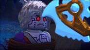 Während die Ninja noch immer nicht zurückgekommen waren und Skylor die Kühlung mit den Eis-Kräften nicht mehr lange halten konnte, gab sie an, dass die Kühleinheiten mit voller Leistung laufen würden, aber Nyas Temperatur steige immer noch, wobei sie an einem Bildschirm saß. Anschließend gab sie besorgt bekannt, wenn sie sich zu stark erwärmen würde, dann werde sie vollständig schmelzen. Danach teilte sie mit, wie sie es selbst auf einer Anzeige erfahren hatte, dass die Ninja zwar nun im Besitz von Aspheeras Stab waren, es jedoch Komplikationen gab und sie deswegen erst vorausslichtlich in 45 Minuten ankämen, weshalb sie Aspheera hinhalten müssten, damit sie ihnen weiterhin hilft. Doch, als Wu und P.I.X.A.L. Aspheera nicht mehr am Tisch sitzen sah, ging der Meister nach ihr auf die Suche in der Hangar-Bucht.