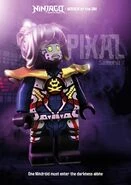 P.I.X.A.L. (Primary Interactive X-ternal Assistant Life-form) (sic!) ist Cyrus BorgsAndroiden-Assistentin. Als sie das erste Mal auf die Ninjas (sic!) trifft, steht sie unter der Kontrolle des Digital Overlord (sic!) und kopiert unter Einsatz ihrer Kräfte die Pläne von Zane, um den Bau der Nindroids zu ermöglichen. Sie ist kalt und mechanisch und unfähig zu jeglicher emotionalen Regung. (sic!) P.I.X.A.L. ist bereits das 16. Modell ihrer Reihe. Die ersten 15 hatten Fehlfunktionen aufgrund fehlerhafter Thermo-Spulen und eines defekten AIE-ES-Chips, der zur Unterdrückung der Emotionen dient. Borg konnte die Spule reparieren, aber das Problem des Chips ließ sich nicht vollständig lösen.[4]