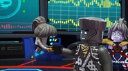Etwas später ließen Sylors kopierte Eis-Kräfte noch mehr nach und P.I.X.A.L. verstärkte den Gefriervorgang, indem sie einen weiteren Kühler zu Nya stellte und ganz aufdrehte. Obwohl dies erst einmal helfen würde, wie sie aussagte, lief ihnen die Zeit weg und Zane musste unbedingt zurückkehren. Anschließend bemerkte sie auf einem Bildschirm, dass sie Nya nur noch für eine Stunde stabil halten könnte. Als Skylor Nya Mut zu sprach, dass es ihnen gelingen werde, und erkundigte sich bei der Nindroiden, ob die Ninja nicht bald da wären, worauf sie jedoch keine Antwort gab und wieder auf einen Monitor blickte.