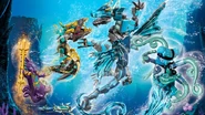 Die Ninja, außer Kai und Cole, wollen gemeinsam mit Maya, Nyas elementaren Problem auf den Grund gehen und betreten deshalb den Wassersegler, mit deren Hilfe sie die Unterwasserlandschaft erkunden können. Doch sie werden von einem Wassermonster angegriffen und sinken so auf den Grund des Ozeans.